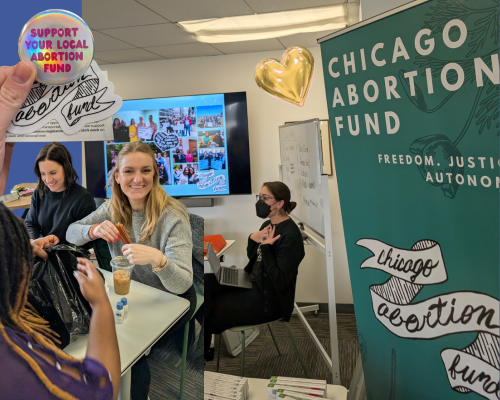 EDA members visited Chicago Abortion Fund’s offices to learn from their team and packed post-abortion care packages for people getting care in Illinois clinics.